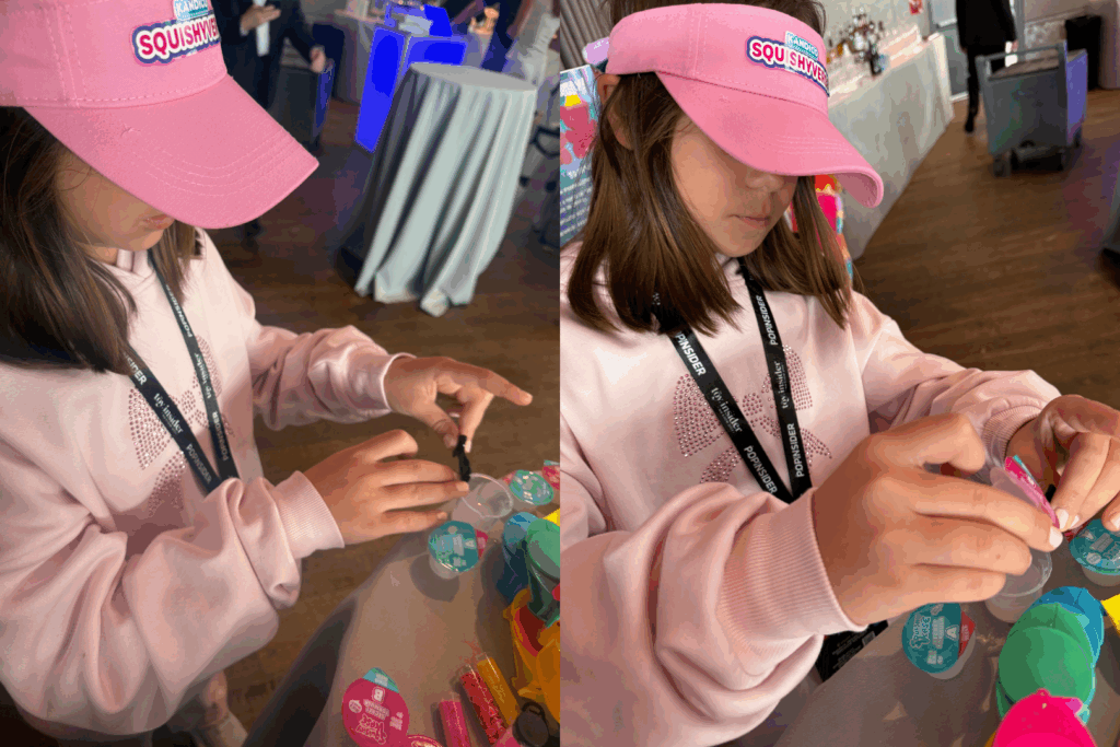 Representing KANDICO at Holiday of Play were Katrin and Leia, who brought energy, and charm that drew the crowd to the booth. Their interactive demonstrations turned the space into a mini creative playground, drawing crowds of curious guests eager to try the experience creating SquishyVerse Snackipoos for themselves.